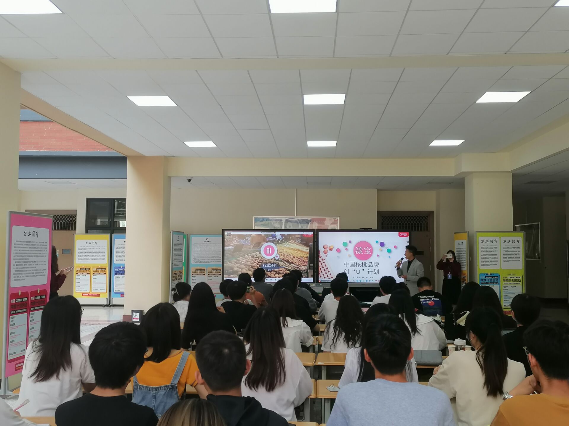 路演现场,各队代表进行现场PPT讲解,从项目分析、公司简介、产品定位等方面介绍创业计划。三位老师针对项目细节进行提问,点评项目的优势和不足,并就现场讲解情况、产品形态、项目现状、市场现状等方面给予改进意见和建议,帮助参赛队伍完善创业计划。