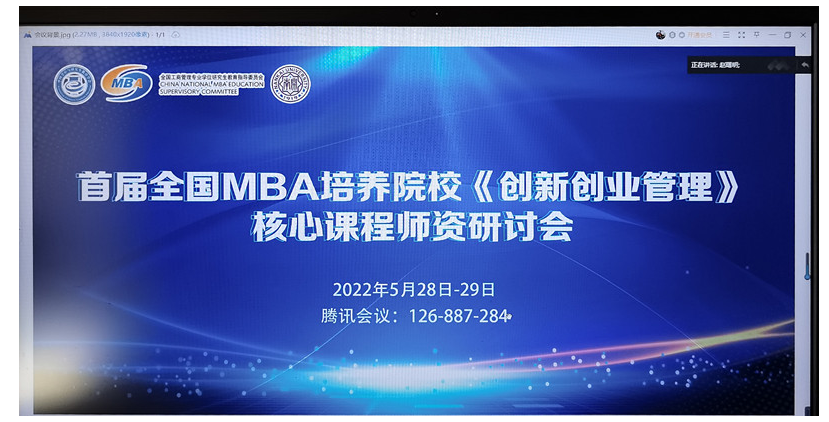 5月28-29日,商学院卢启程教授、王建中副教授、赵红波副教授、崔钰婷老师以及杨泓祎老师参加了首届全国MBA培养院校《创新创业管理》核心课程师资研讨会。本次研讨会由中国学位与研究生教育学会主办,全国工商管理专业学位研究生教育指导委员会秘书处、全国工商管理专业学位研究生教育指导委员会创新创业协同促进中心承办,来自全国多所MBA培养院校的近300位教师在线上开展学习交流。
