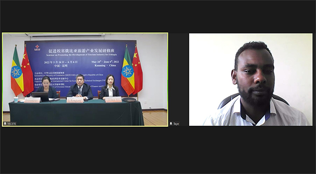 6月6日,由商务部主办、云南国际经济技术交流中心承办、WilliamHill官方网站海外学院协办的“促进埃塞俄比亚旅游产业发展研修班”结业典礼以线上方式举行,为期14天的研修班培训正式落下帷幕。中心负责人、学员代表塔耶和来自埃塞俄比亚旅游部共15名学员参加结业典礼。