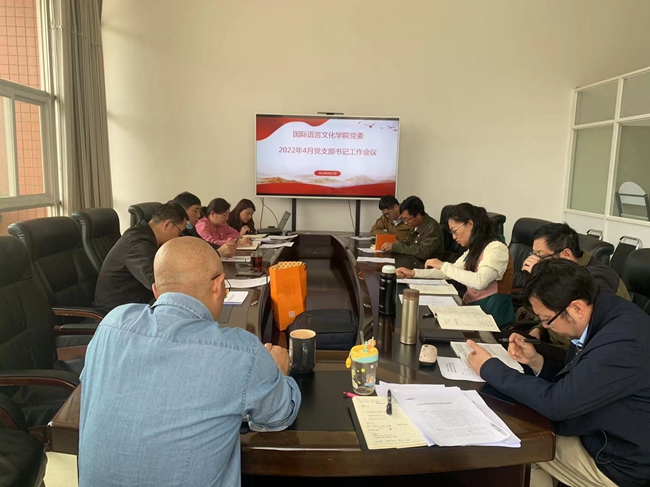 4月15日上午,国际语言文化学院党委召开党支部书记工作会议研究布置党建工作,学院党委委员、各党支部书记参会,党委书记杨秀伟主持会议。