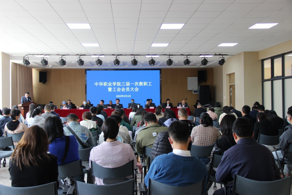 5月4日,中华职业学院三届一次教职工暨工会会员大会在安宁校区修远楼204室举行。院长李小军代表学院作工作报告,刘诗奇代表学院第二届工会委员会作工作报告,大会选举产生了学院第三届工会委员会。会议由学院党委书记沙磊主持,学院全体教职工参加。