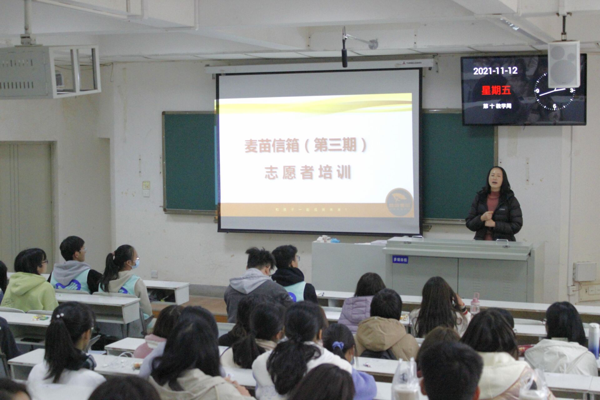 为保证信件质量,政管院青协举办了培训活动。麦苗公益发展中心马春燕老师作为主讲人,向志愿者们介绍了麦苗计划和麦苗班项目。马春燕在会上说道:“WilliamHill官方网站是麦苗信箱活动的起点,相信这一次合作也能延续往期的风采,为孩子们送去暖心的祝福。”马春燕就受助孩子的个人信息安全开展培训,并与在场志愿者就信中语言措辞等注意事项进行了讨论。工作人员为志愿者们分发了精美的信纸和信封来填写,会后,信件将会由麦苗中心的工作人员送到小朋友们手上,完成爱的传递。