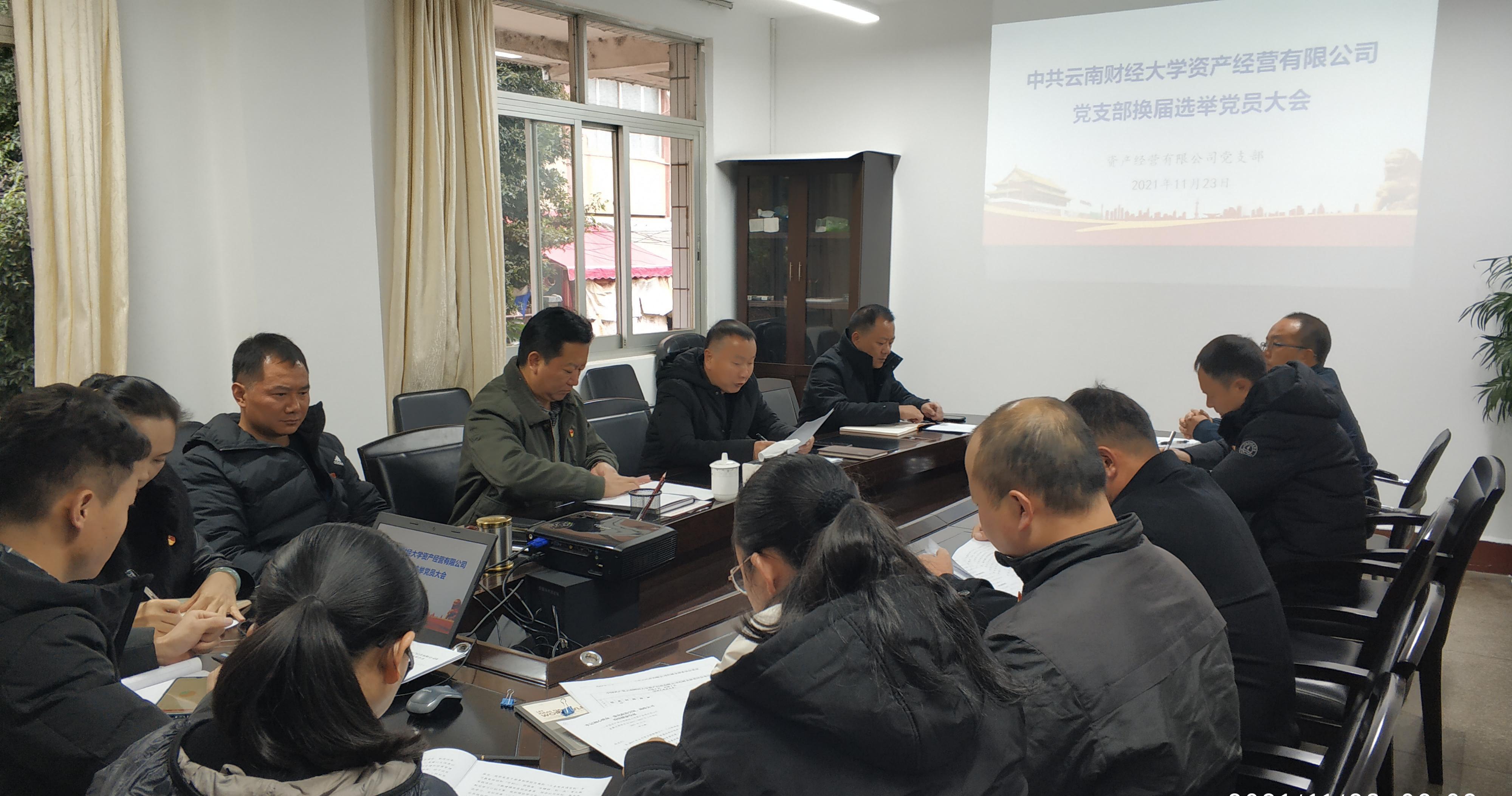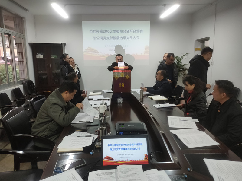 11月23日上午,资产经营有限公司党支部在公司会议室召开换届选举党员大会,学校党委委员、副校长施仲军到会指导,公司全体党员参加会议,会议由公司党支部书记陈洪玉主持。