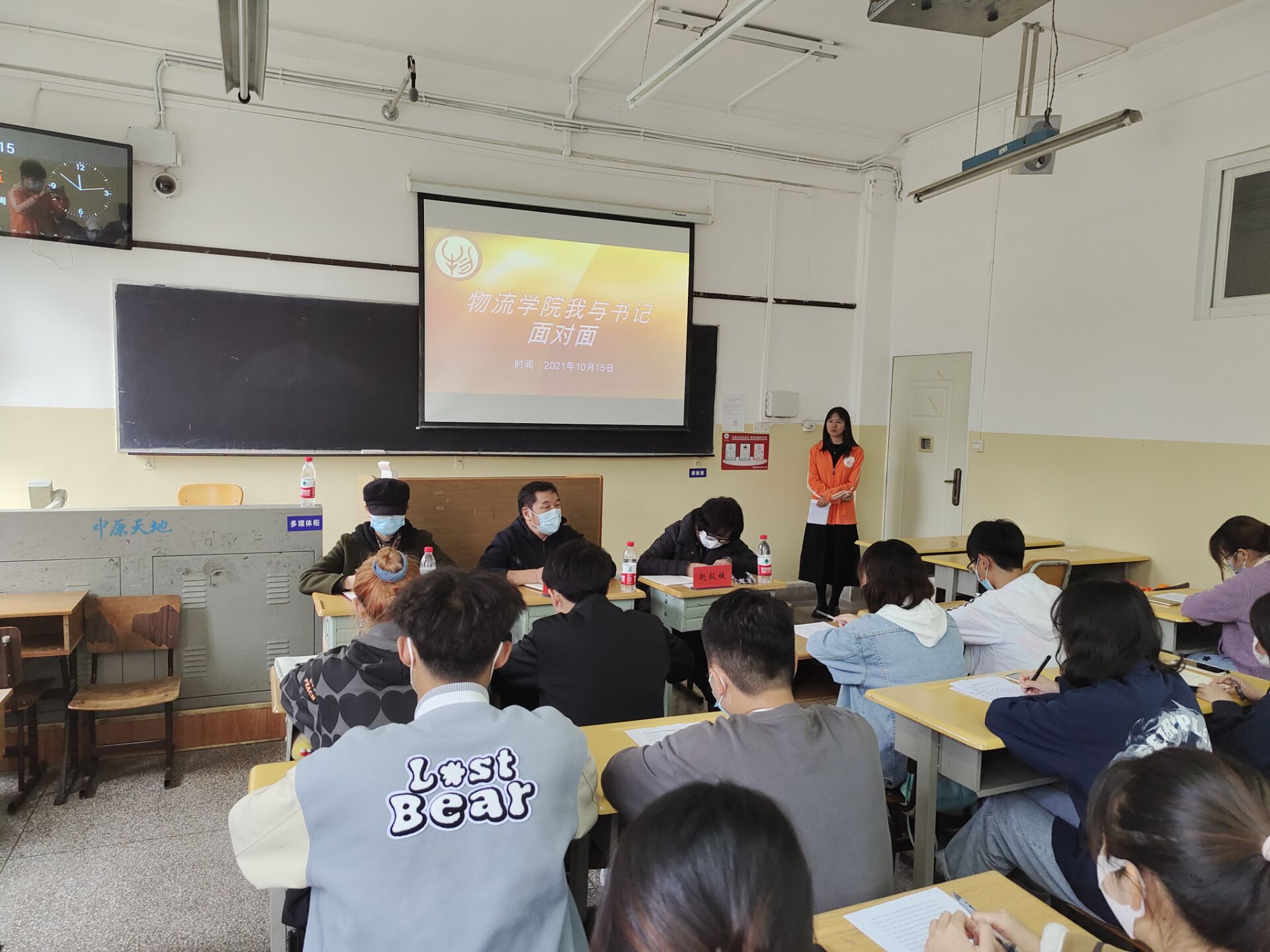 10月15日,物流学院在逸远楼东104室举办“我与书记面对面”交流会。物流学院党委书记赵玮、副书记赵毅媛、各职能部门负责人参加交流会,与学生代表、学生党员代表以及团学干部等进行了深入交流座谈,了解学生们学习生活中遇到的问题和困难,听取学生们对学校学院建设发展的意见建议。