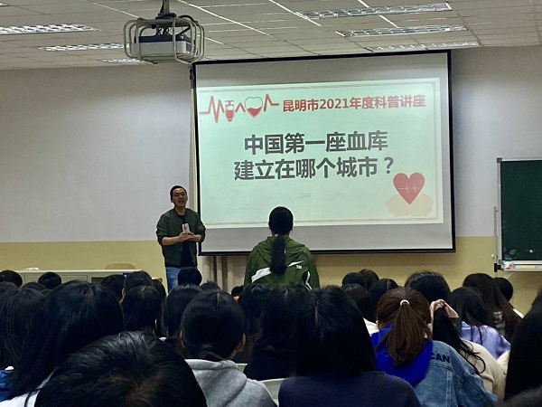 来自血液中心的老师讲解了有关无偿献血、血液成分等方面的知识,介绍了无偿献血者可享有的权利,并告诉同学们适量献血有益健康,消除大家对献血的误解。有奖竞答环节,血液中心专门为同学们准备了特殊的纪念小礼品。