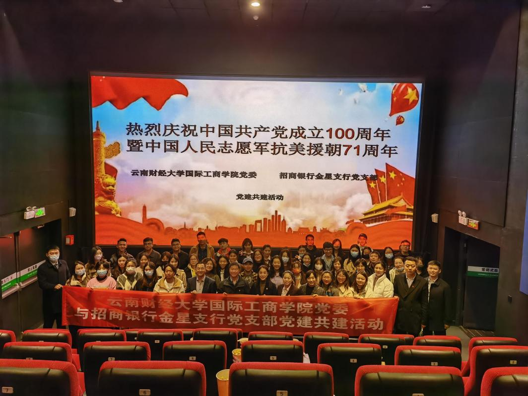 为深入开展党史学习教育,传承抗美援朝精神,激发和增强党员责任感和爱国情怀,10月22日,国际工商学院党委与招商银行金星支行党支部联合开展结对共建活动,一同观看爱国主义题材电影《长津湖》,并进行了观影心得交流。国际工商学院部分教工党员、学生党员以及学院第70期党校部分学员参加此次活动。