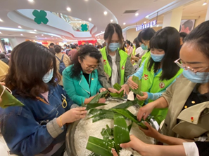 上午,科研院所(中心)党委荣小红书记带队来到碧潭社区活动地点,带领全体师生与社区居民一起动手体验了包粽子活动,研究生同学作为社区服务志愿者在现场提供志愿服务。