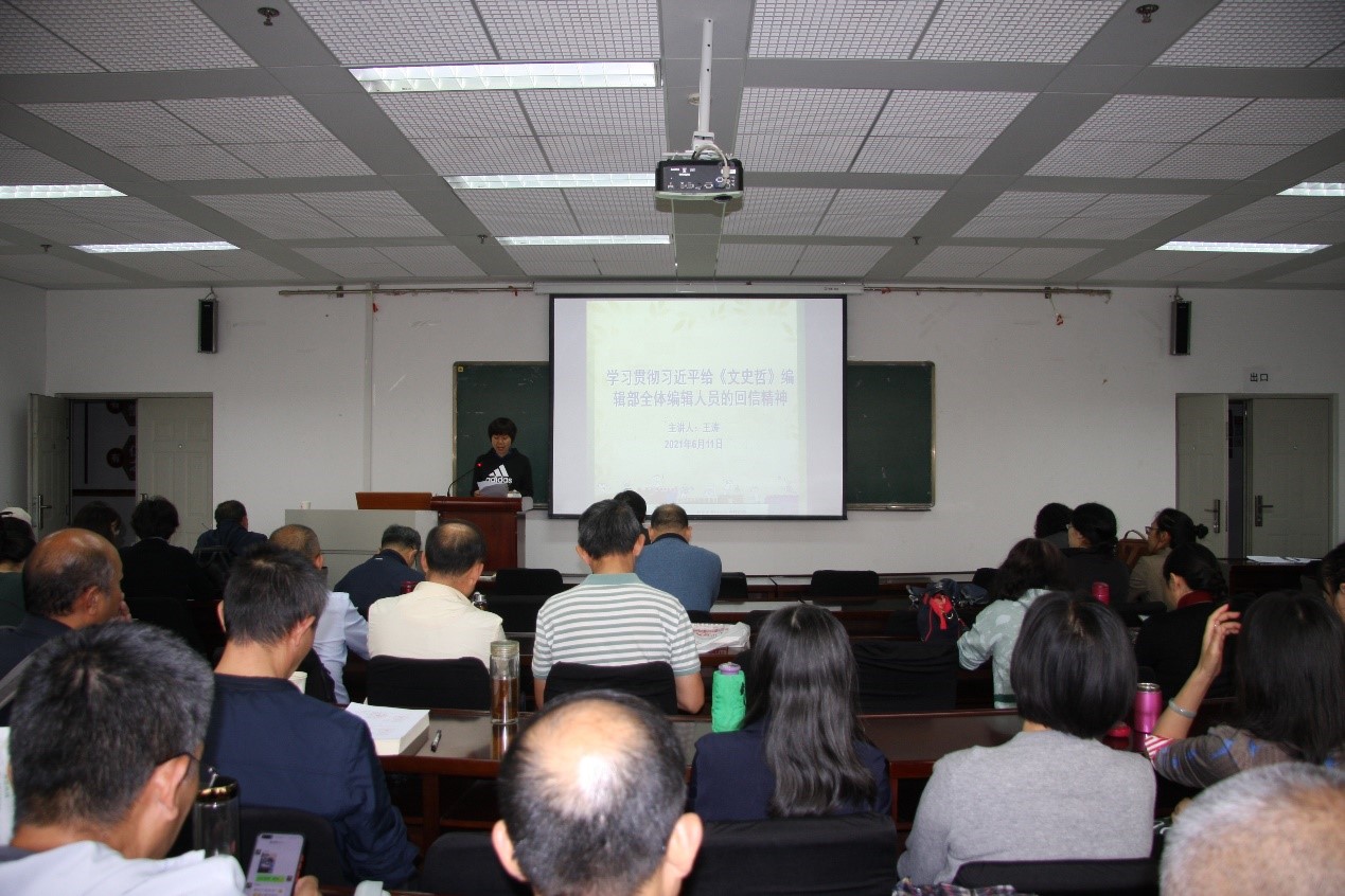 为持续推进党史学习教育,6月11日下午,会计学院召开全体教职工大会,学习贯彻习近平总书记给《文史哲》编辑部全体编辑人员重要回信精神及在两院院士大会、中国科协十大上重要讲话精神。学院党委副书记王涛、副院长罗莉领学。学院党委委员、科室干部、党支部书记等80余名老师参加学习。