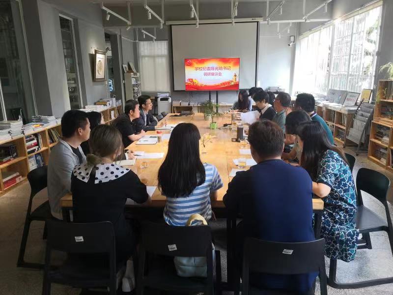 6月17日上午,学校纪委书记陈光瑜到传媒与设计艺术学院调研,并与师生代表进行座谈交流。学院领导班子成员、各党支部书记和班主任、学生代表参加座谈。