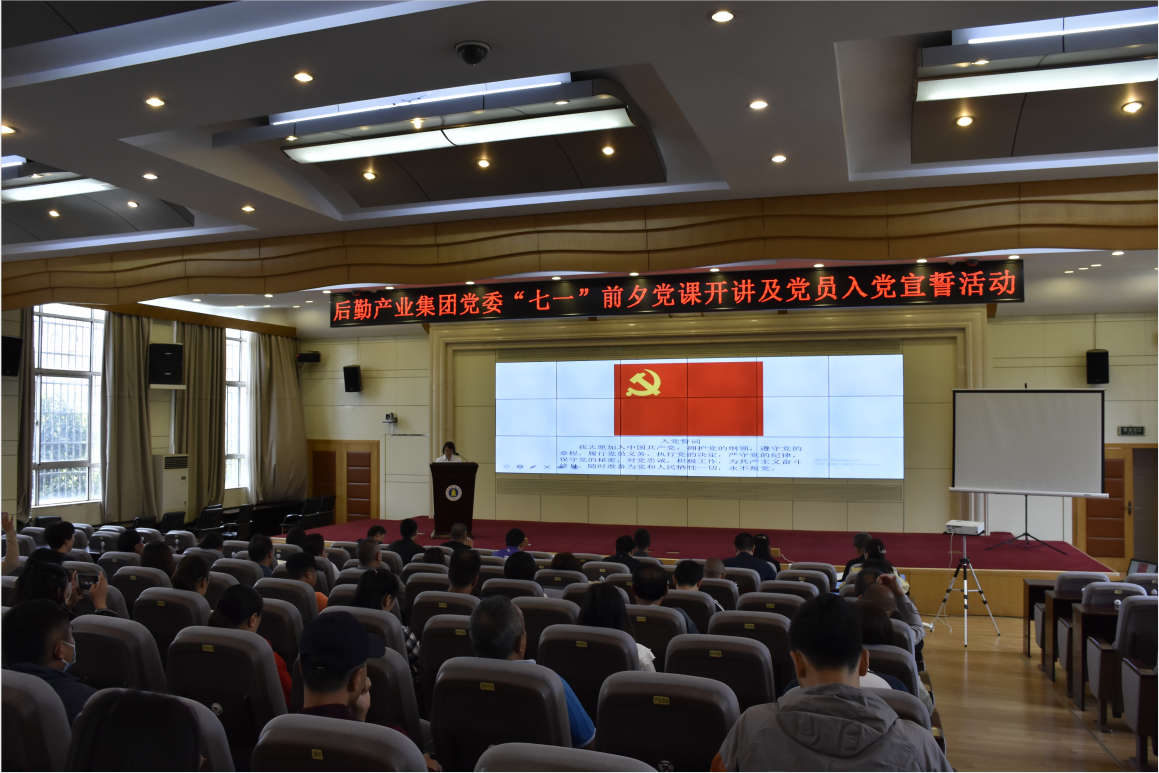 6月22日上午,后勤产业集团党委在凌云楼北附201报告厅举行新党员宣誓、老党员重温入党誓词活动,庆祝中国共产党成立100周年。活动由集团党委书记段云赋主持,集团60余名党员参加。