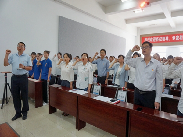 学院党委书记杨秀伟领誓,新党员进行入党宣誓,老党员重温入党誓词。每个党员面向鲜红的党旗,举起右手庄严宣誓,表达了为党的事业奋斗终身的决心和坚定信念。