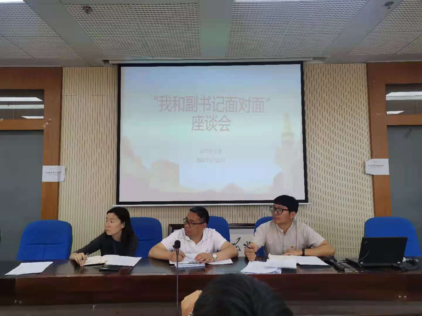 为深入贯彻落实习近平总书记在党史学习教育动员大会中的重要讲话精神,进一步把党史学习教育引向深化,把学党史学习教育同解决实际问题和推动工作结合起来,切实把握好党史学习教育的着力点,大力推进“我为师生办实事”。5月21日上午,商学院在南院逸夫楼521室和507室,举办商学院“我与书记、院长”、“我与副书记”面对面师生座谈会,进行党史学习教育“我为师生办实事”的调研和意见征集。