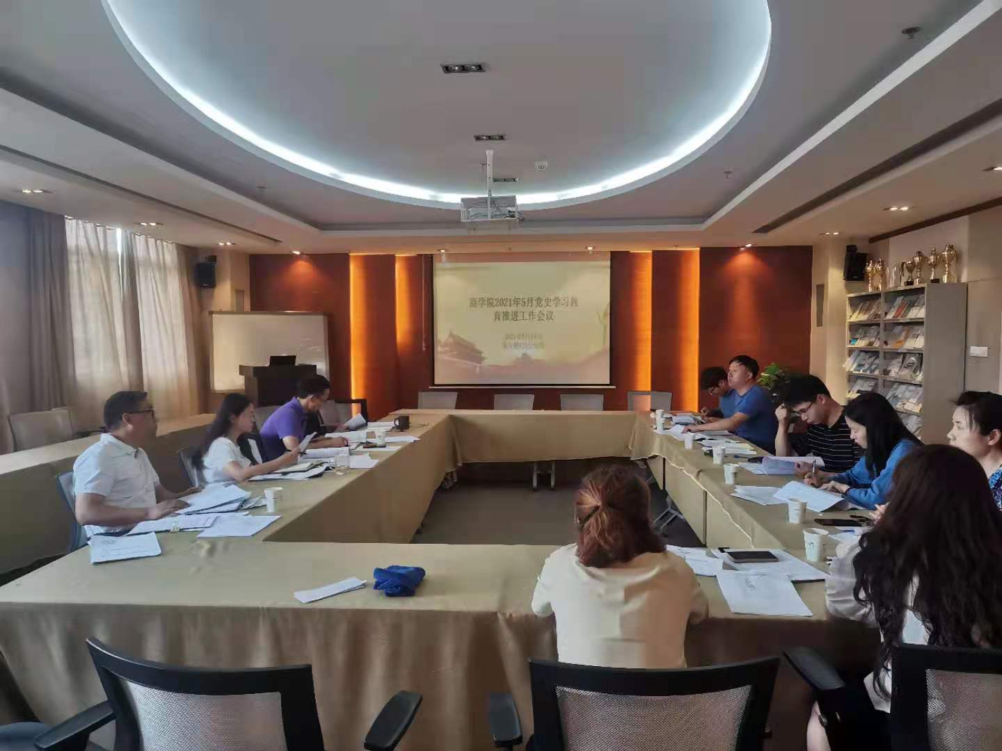 5月13日,商学院党委组织开展5月份党史学习教育工作推进会。会议由商学院党委书记王敏主持,学院党委委员、各支部书记参加。