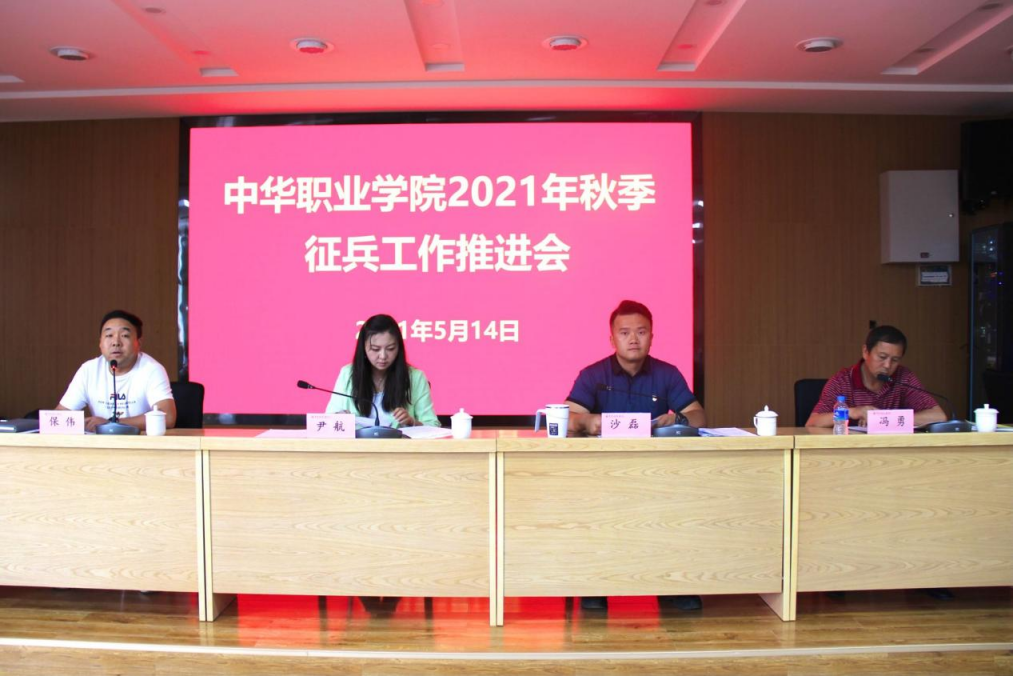 5月14日,中华职业学院在安宁校区修远楼204室召开了2021年秋季征兵工作推进会。学生处副处长、武装部副部长尹航,武装部国防科科长冯勇,学院党委书记沙磊、党委副书记兼纪委书记保伟,全体辅导员、班主任代表及学院有入伍意向的学生参加会议,未能到会的2017级毕业生以线上方式参加。会议由保伟主持。