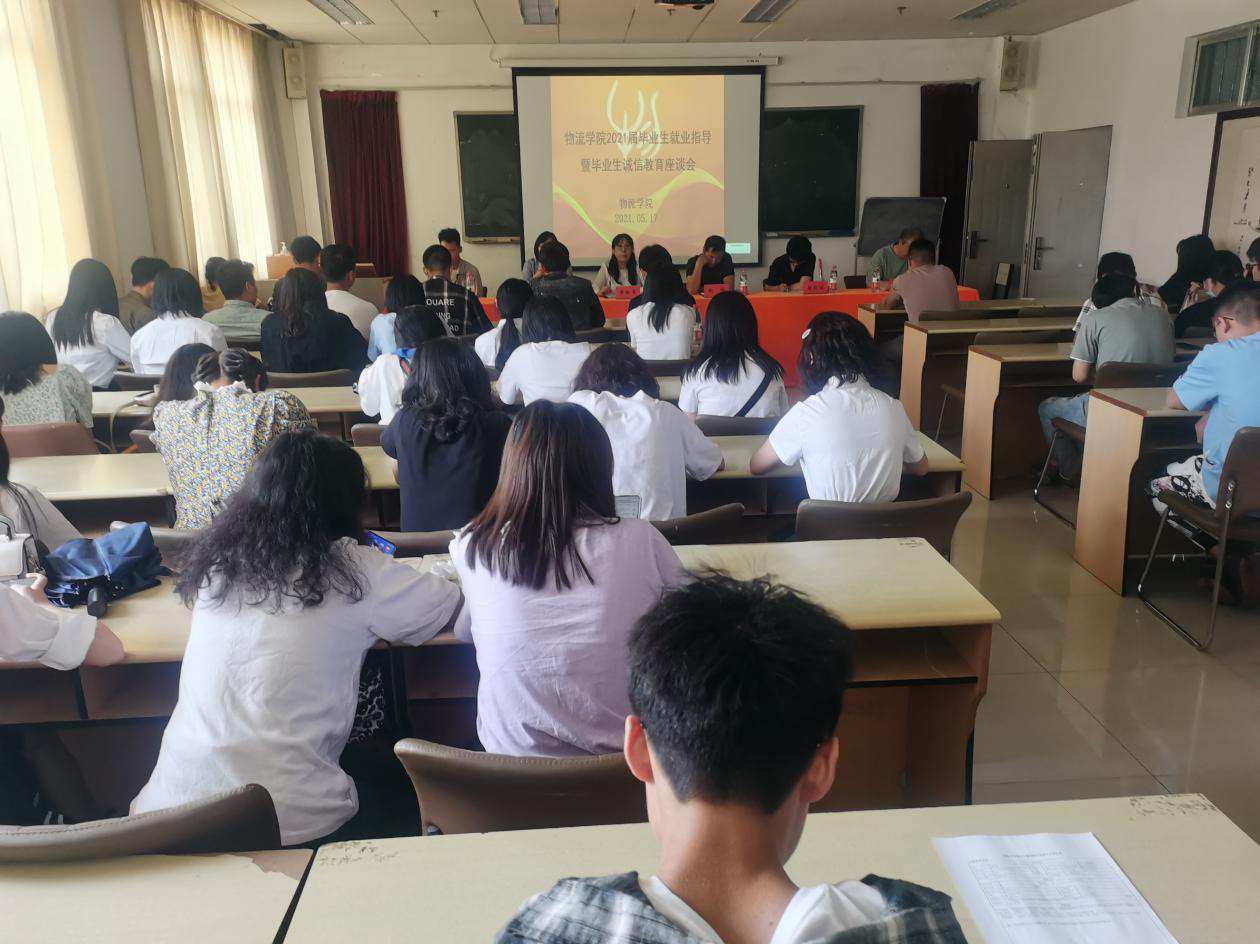 5月17日上午10时,物流学院在逸夫楼717室举办“毕业生就业指导暨毕业生诚信教育”主题座谈会。学院党委书记赵玮、正处级辅导员黄娅雯、学生科科长王晶、辅导员任亮,毕业生班主任及2021届毕业生代表参加座谈会。会议由学院党委副书记赵毅媛主持。