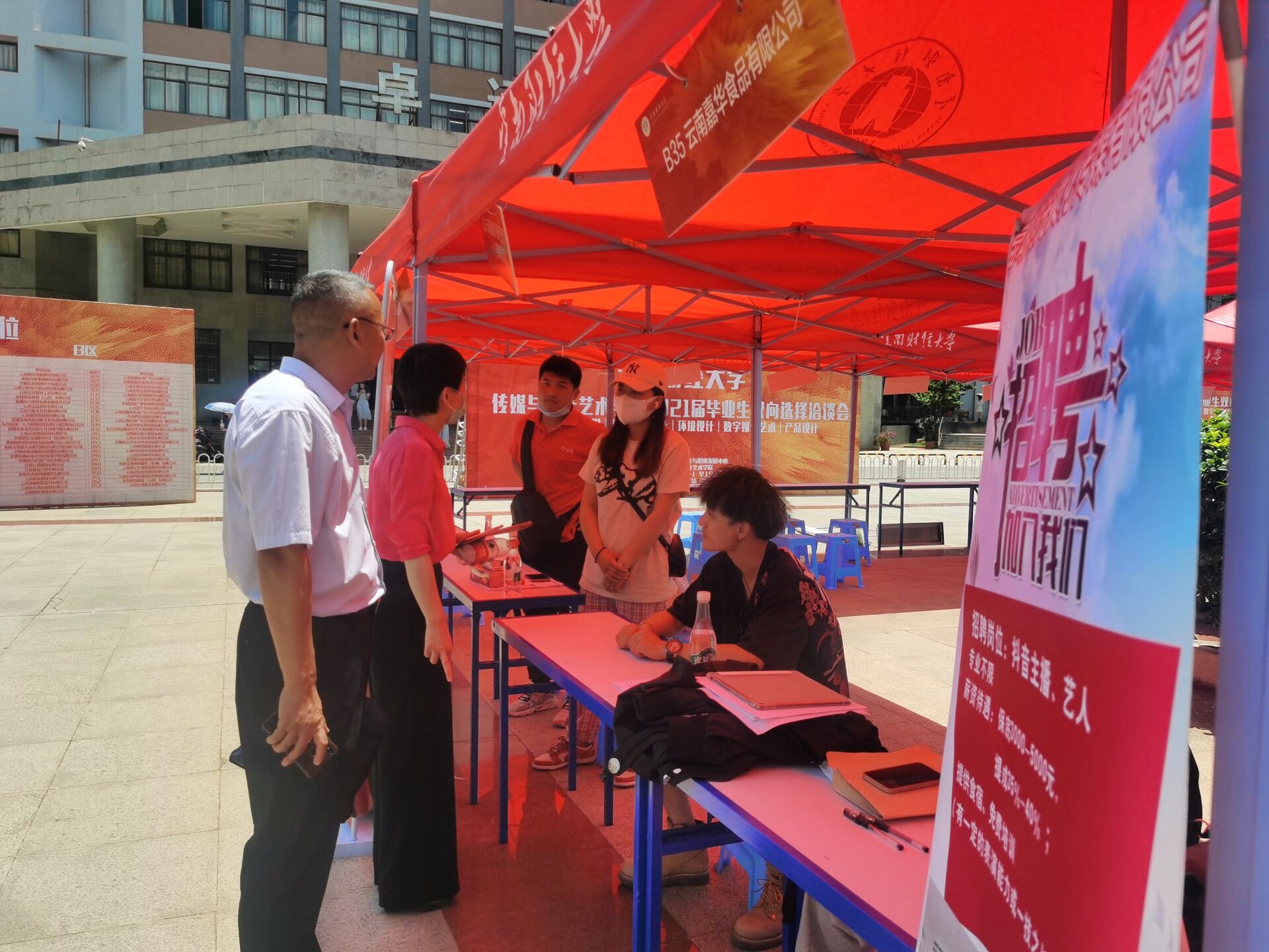 5月17日,传媒与设计艺术学院在北院博雅广场举办2021届毕业生双向选择洽谈会。此次双选会共有云南金芒果装饰工程有限公司、昆明中策装饰集团、云南褐石广告、云南众力影业等101家单位参加,提供400余个就业岗位,覆盖环境设计、平面设计、产品设计、数字媒体、新闻、广告等行业。300余名2021届本科毕业生参加招聘会。本次招聘会与毕业设计展同步举行,旨在促进用人单位对毕业生的了解,达到双向选择的效果。