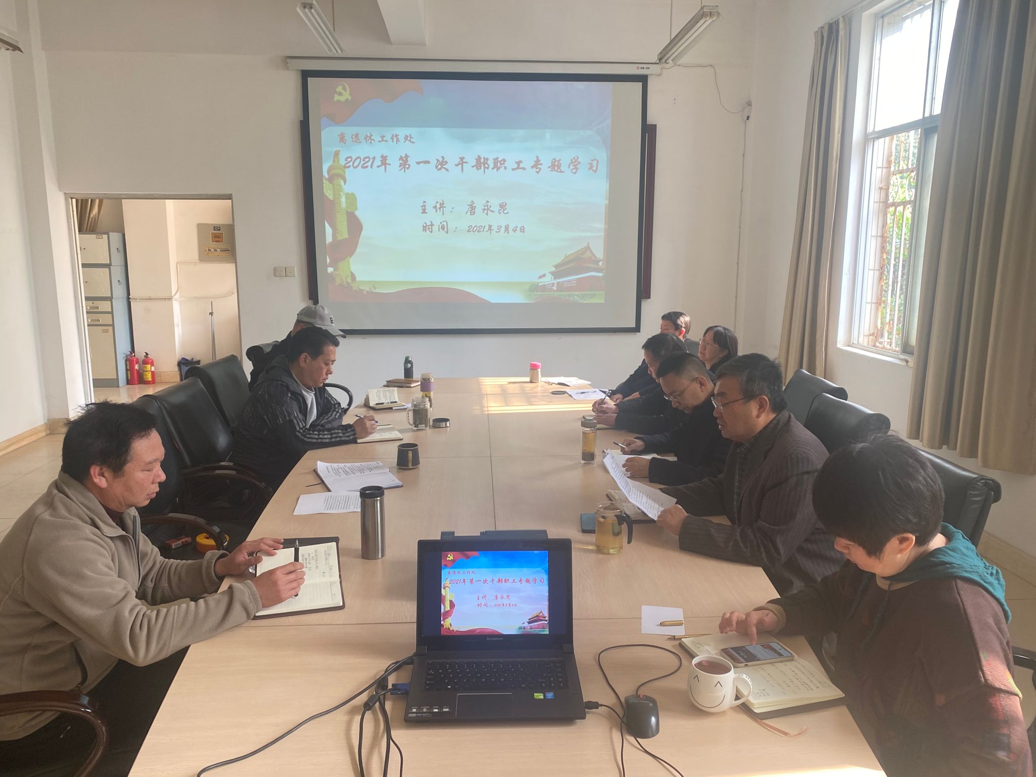 3月4日,离退休处开展2021年全国全省老干部局局长会议精神学习,全体在职干部职工参加学习,处党委书记唐永昆主持学习。