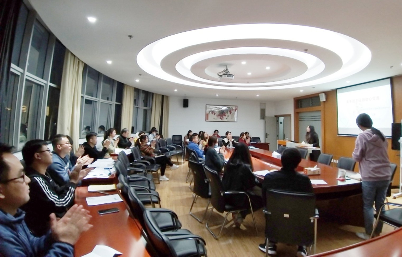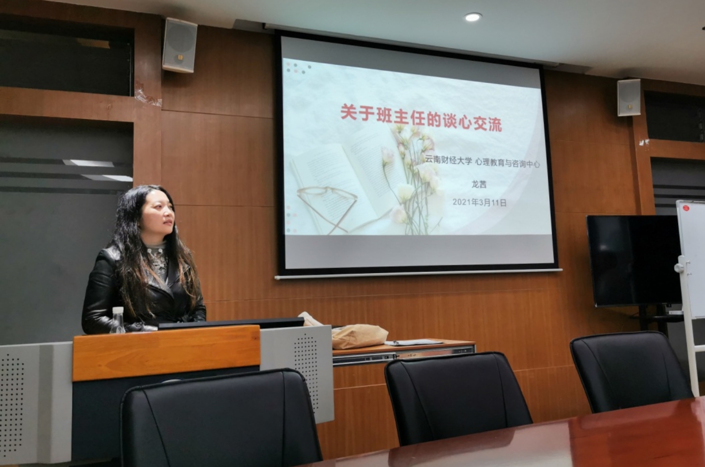 3月21日晚,财政与公共管理学院在逸夫楼923会议室举行班主任工作培训会。本次培训会以“班主任的谈心交流”为主题,主要围绕如何开展学生心理健康教育工作进行培训。学生处心理教育与咨询中心龙茜老师受邀主讲,财政与公共管理学院党委副书记王晓芬、全体辅导员及班主任参加培训。