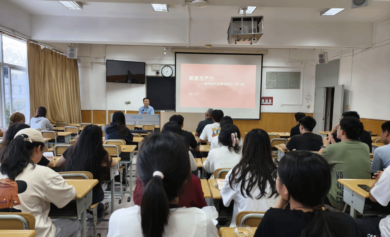 余怒涛从新质生产力是什么、为什么、怎么办、总结与展望四个部分进行讲解。他表示,新质生产力本质上是先进生产力的质态,发展新质生产力是推动高质量发展的内在要求和重要着力点。他以理论与案例相结合,阐释了新质生产力的重要性,并从专业的角度指出高校工作与新时代大学生培养工作对新质生产力的意义。结合自身研学经历,余怒涛鼓励同学们努力学好概率论、统计与数学等学科,主动学习,拥抱新质生产力,紧跟时代步伐。