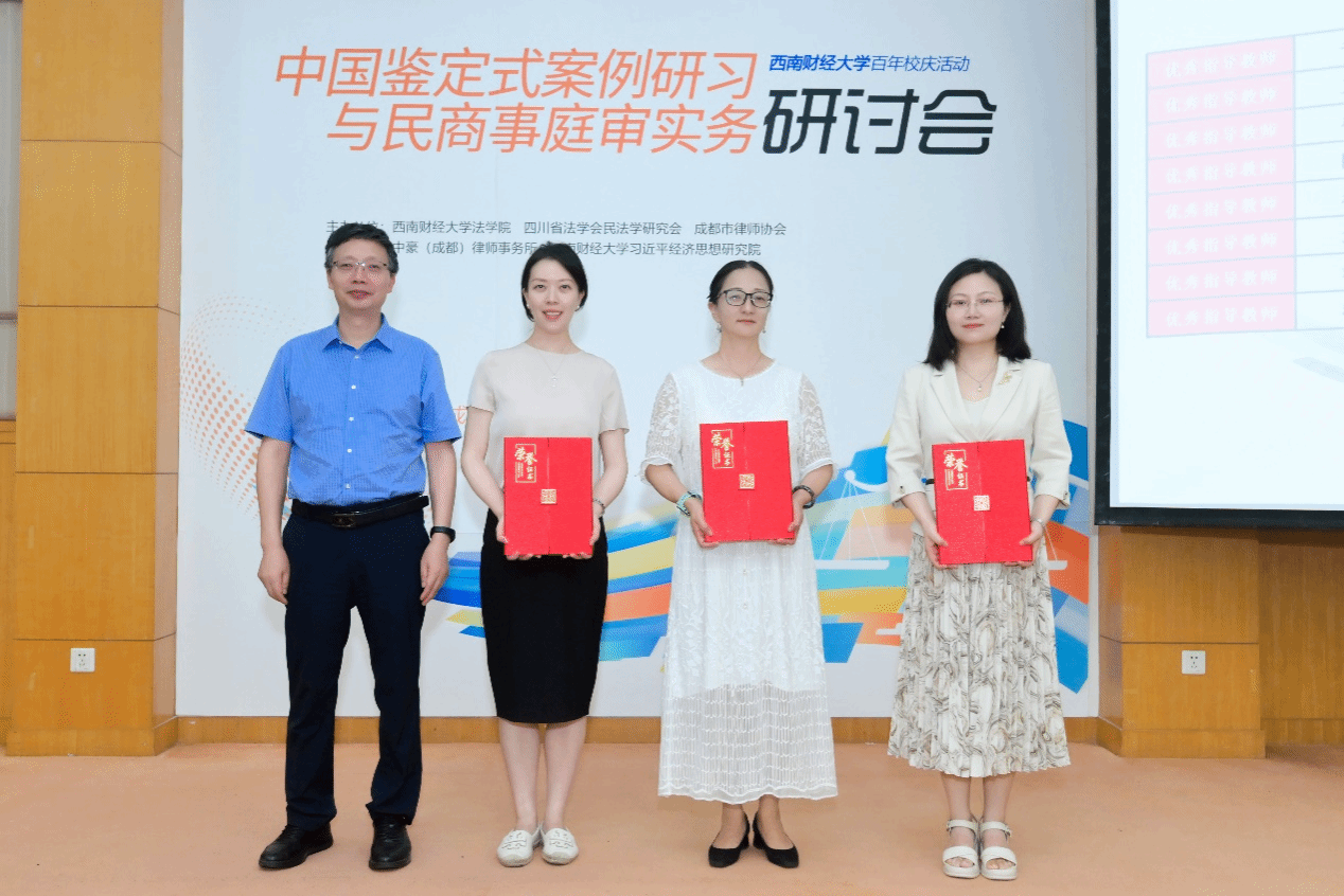 研讨会还对第一届“中豪杯”西部民商事鉴定式案例研习大赛优秀组织单位、优秀指导老师以及获奖选手颁发荣誉。法政学院获评“优秀组织奖”,于定明老师、王雪老师获评“优秀指导老师”,李杉同学获得二等奖,黄丽蓉同学获得三等奖,李朝孔、张颉埌、郑文婕、胡太清、王婷、徐敏等六名同学获得优秀奖。