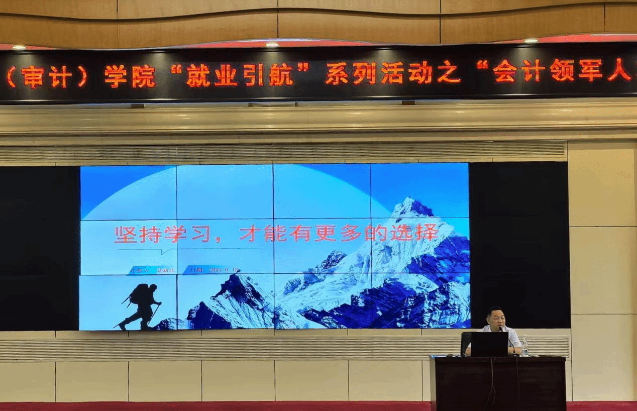 为引导会计学子做好人生和职业规划,深化对会计行业的认知,6月18日晚,会计(审计)学院在凌云楼国际学术报告厅组织开展“就业引航”系列活动之“会计领军人才校园行”专题讲座。云南省会计领军人才、云南省工投集团纪委副书记、审计部长聂新来和云南省会计领军人才、中证天通会计师事务所合伙人郭培培应邀主讲,讲座由会计(审计)学院副院长吴昊旻主持。云南省财政厅会计处(会计服务中心)处长周燕、副主任陈思瑶,会计(审计)学院院长陈永飞、党委书记李丽忠、党委副书记兼纪委书记王涛及180余名师生参加讲座。