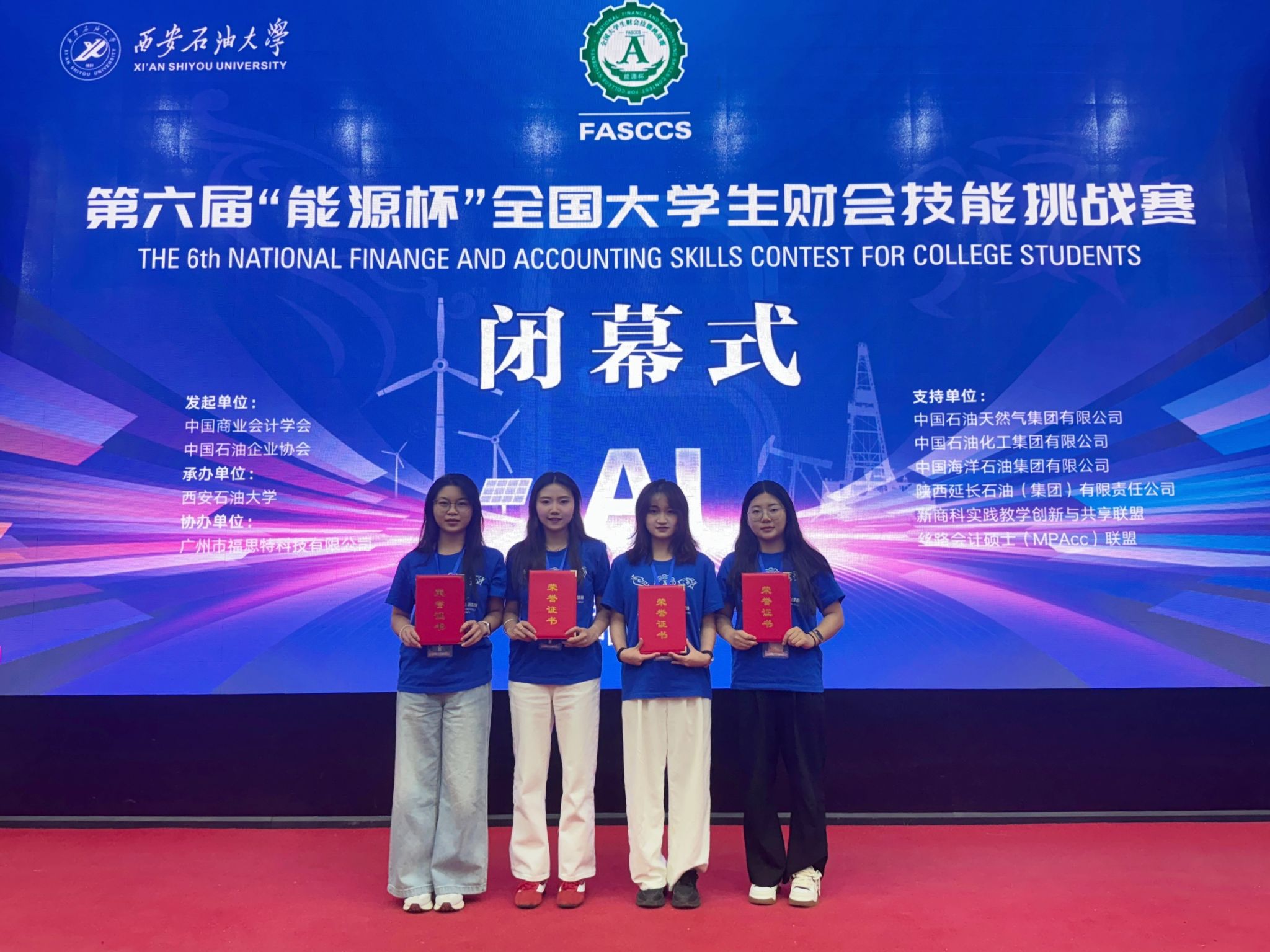 5月17日,第六届“能源杯”全国大学生财会技能挑战赛决赛在西安石油大学举行。经过定人必答、定队必答、抢答、共答和闯关冲刺等环节,WilliamHill官网会计(审计)学院杨顺吉、钱欣月、李严秀、周洁四名同学组成的参赛团队荣获全国一等奖,WilliamHill官方网站荣获优秀组织奖。