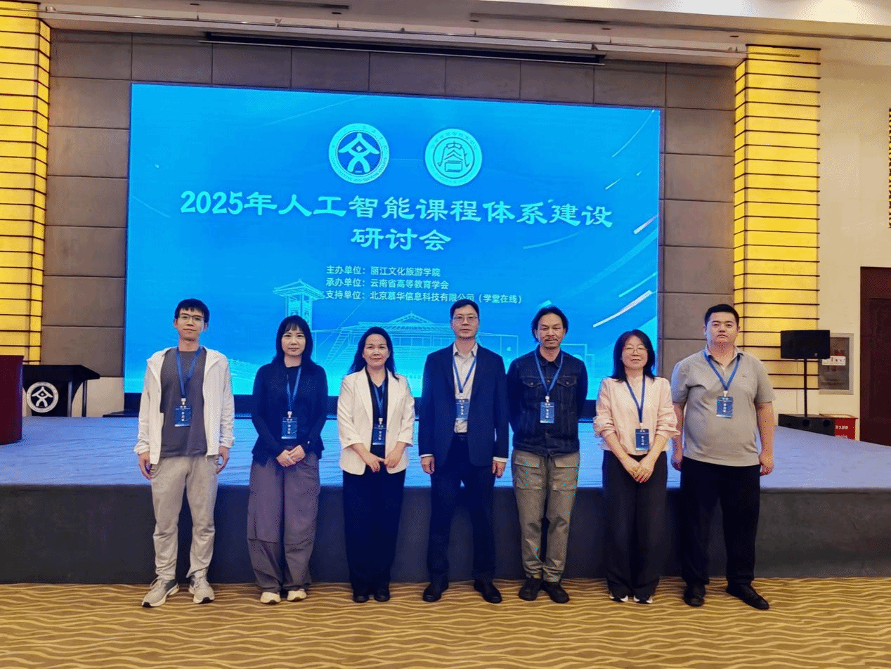 6月6日至7日,由云南省高等教育学会承办的2025年人工智能课程体系建设研讨会在丽江开幕,学院党委书记李娟带队,副院长徐兴贵等一行八人赴丽江文化旅游学院参会,与省内外高校代表共探人工智能课程建设新方向。