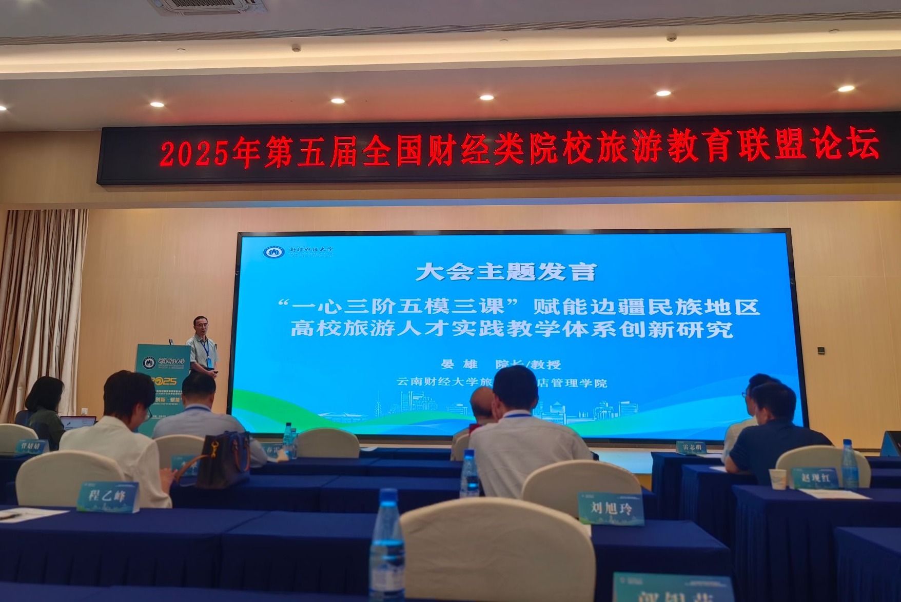 论坛上,晏雄作题为《“一心三阶五模三课”赋能边疆民族地区高校旅游人才实践教学体系创新研究》的主题发言,围绕边疆民族地区高校旅游人才培养体系的特色优势及创新范式展开交流,结合WilliamHill官网多维度实践育人体系、民族团结进步示范创建及“全空间、无国界”校企协同育人模式等分享了旅游教育领域的实践经验,为财经类院校旅游人才培养提供了新思路和新观点,引发与会者的广泛共鸣。