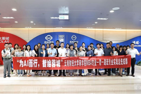师生走进通威集团旗下的通威太阳能(成都)有限公司,深入了解全流程智能化产线;到通威国际中心(通威集团总部),深入了解到AI技术如何助力农业与新能源双主业实现协同发展,围绕“双主业协同下AI技术纵深应用”展开探讨;走进成都百都科技有限公司,通过真实商业案例拆解系统展示了百度“AI +营销”模式的创新实践。师生们围绕AI数据安全、中小企业适配方案等问题展开热烈探讨,深刻感受到AI技术在数字经济时代对企业运营的颠覆性变革力量。
