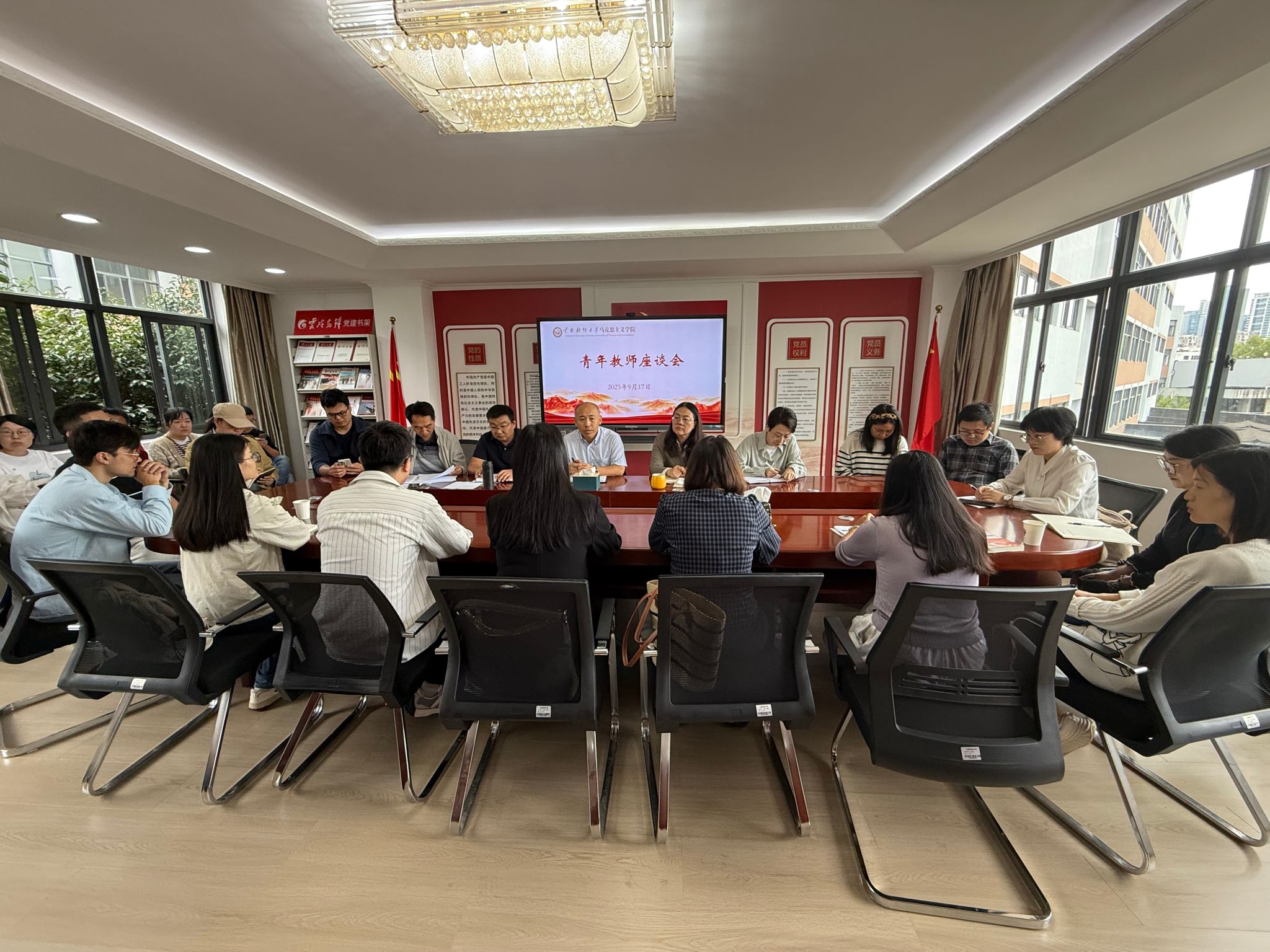 9月17日,马克思主义学院召开青年教师座谈会,学院班子成员与30余名青年教师共话育人初心,共谋学院发展。