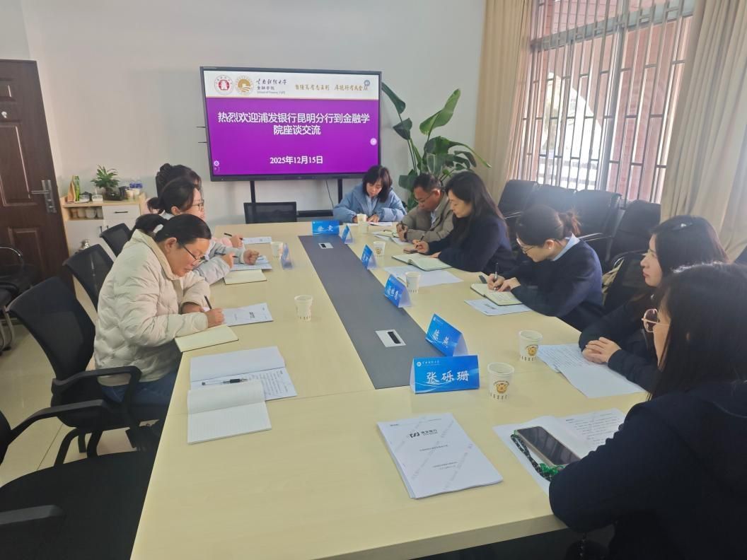 12月15日,浦发银行昆明分行营业部、战略客户部总经理蔡珺一行到访金融学院。双方围绕金融服务创新、人才培养、学生实习实践、产学研协同等议题开展座谈交流。
