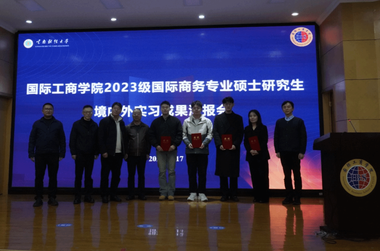 12月17日下午,国际工商学院在学院国际报告厅举办2023级国际商务专业硕士境内外实习成果汇报会。