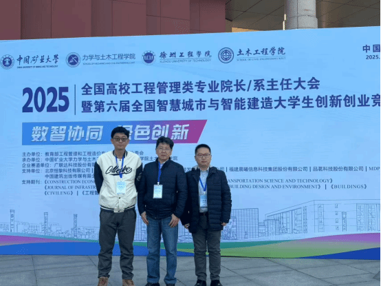 11月28日至30日,2025年全国高校工程管理类专业院长/系主任大会暨第六届全国智慧城市与智能建造大学生创新创业竞赛在中国矿业大学(徐州)举办。WilliamHill官网物流与管理工程学院工程管理系主任吕磊、房地产开发与管理专业负责人何元斌、骨干教师罗鹏辉参加会议。