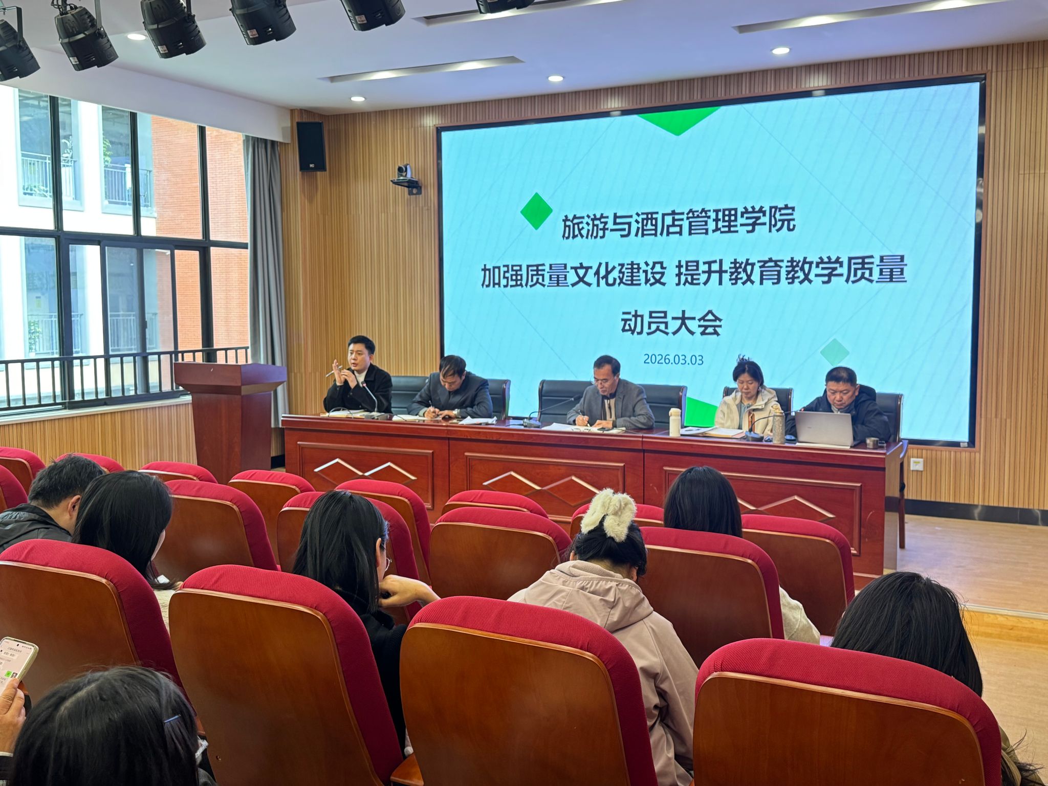 为推进本科教育教学审核评估整改工作,3月3日,旅游与酒店管理学院召开全体教职工大会,就启动“加强质量文化建设,提升教育教学质量”系列活动作工作安排。