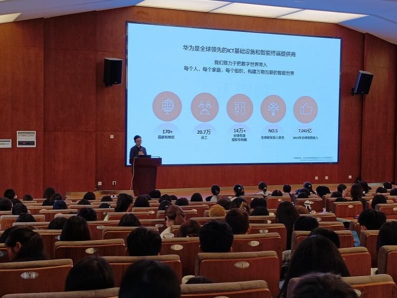 9月23日下午,华为投资控股有限公司全资子公司——深圳慧通商务有限公司到中华职业学院举办“大梦想,正当时”2025届毕业生校园专场宣讲招聘会。此次招聘会吸引了来自学院计算机科学与技术、市场营销、财务管理等13个专业的500余名2025届毕业生参加。招聘会在安宁校区鹏云一附101报告厅举行。