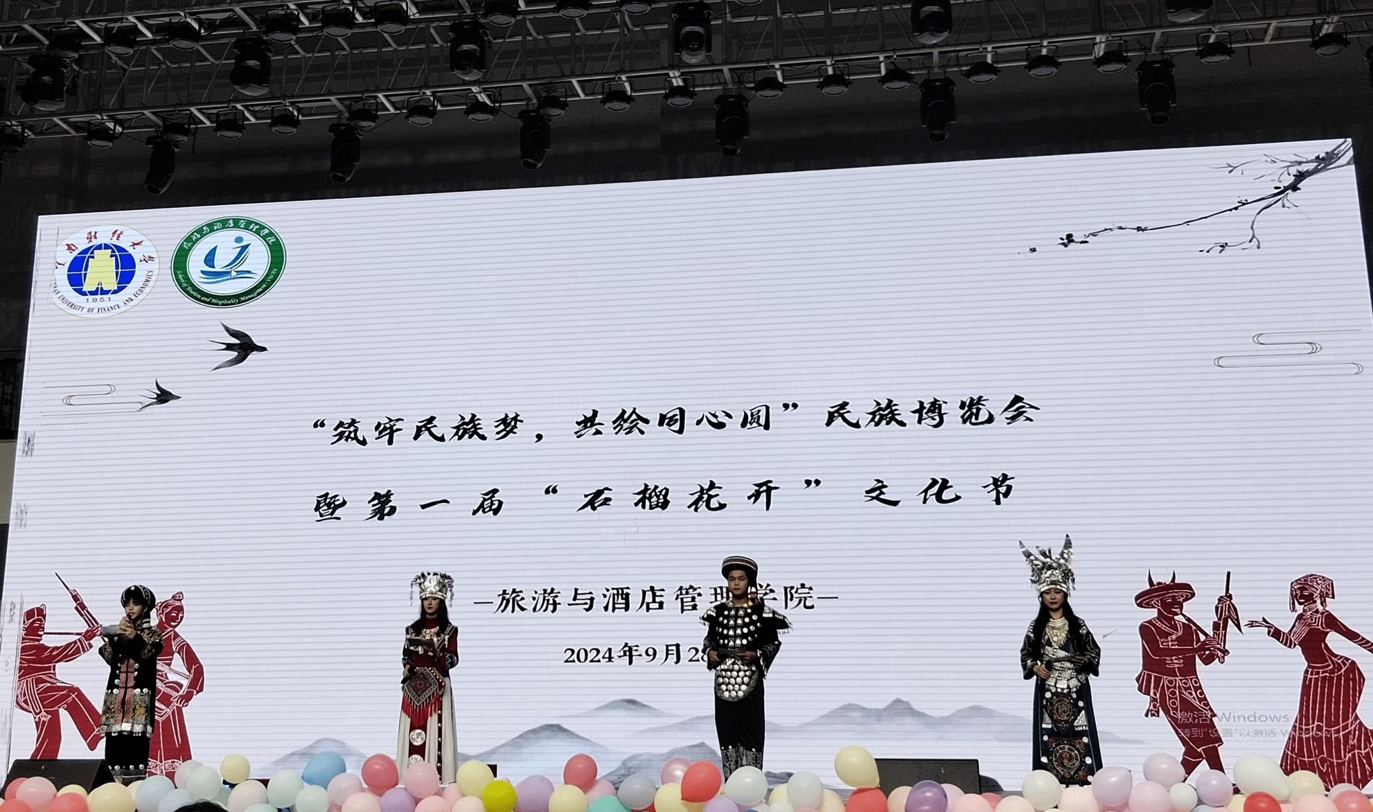 9月28日晚,旅游与酒店管理学院于安宁校区体育馆举行“筑牢民族梦,共绘同心圆”民族博览会暨“石榴花开”文化节开幕式及迎新晚会。学院院长晏雄、党委书记李健、党委副书记李永祥、学校团干部代表、全体新生班主任、辅导员及2024级新生参加活动。