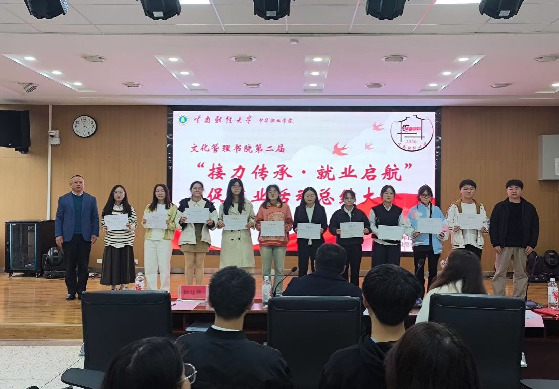 为引导书院“员工”在实战中汲取经验教训,更好地助力学院就业工作开展,提升自身求职就业能力,11月7日中午,中华职业学院文化管理书院在安宁校区修远楼204室举办第二届“接力传承·就业启航”促就业活动总结大会。学院党委书记保伟、就业与创业服务中心杨廷德、就业专干汤鸿彦、文化管理书院指导老师罗香玉及书院全体“员工”参加。