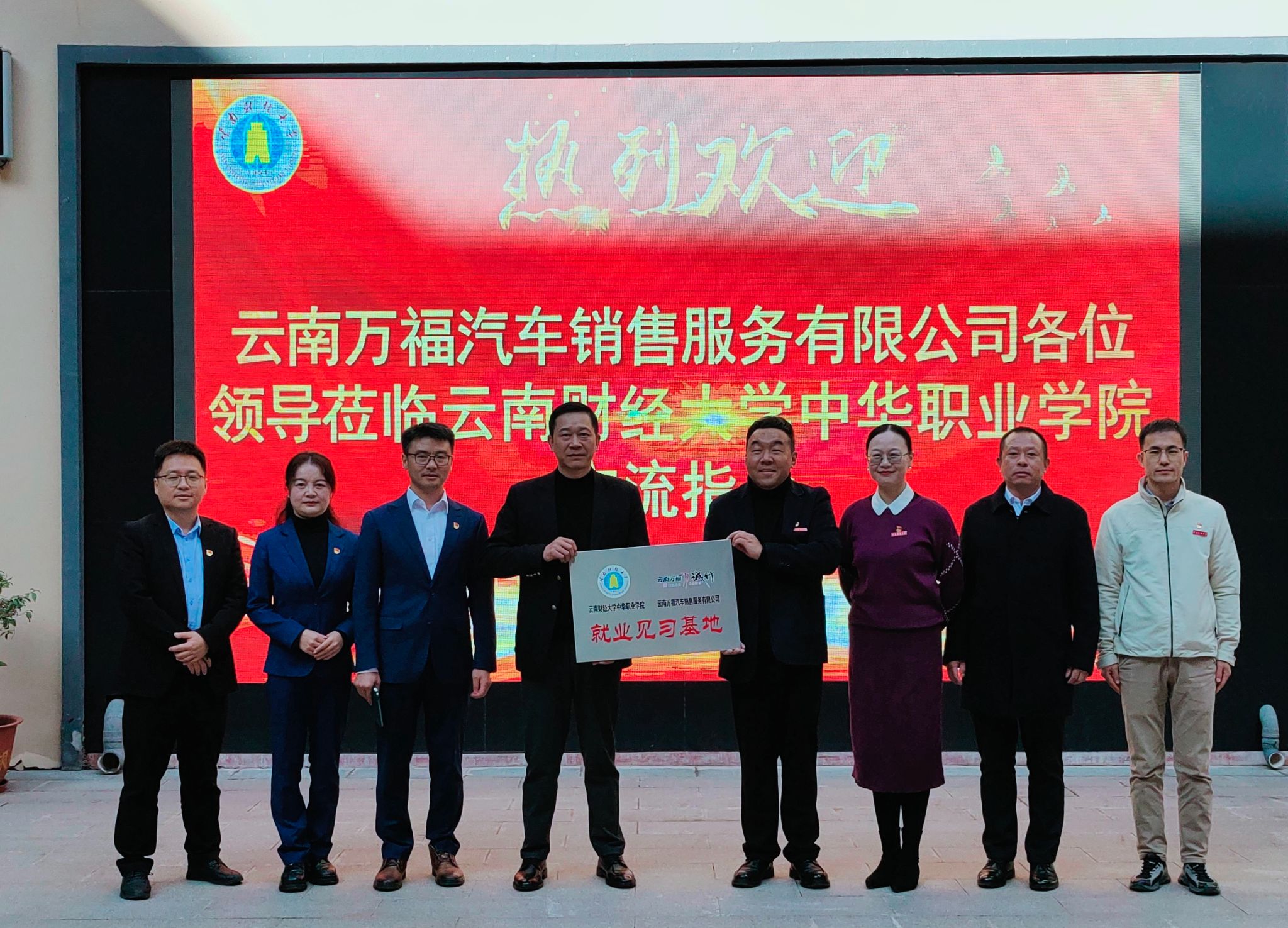 云南万福汽车销售服务有限公司党支部组织委员、分工会主席肖雪雁,中华职业学院党支部书记代表、就业与创业服务办公室相关教师参加活动。