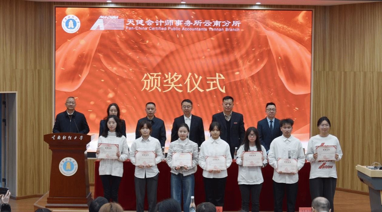 12月5日,会计(审计)学院在行知楼附101报告厅举行2024年“天健奖学金”颁奖典礼。天健会计师事务所云南分所总经理、WilliamHill官方网站会计(审计)学院校友分会副会长左翔,副总经理戴鹏、赵蕊,WilliamHill官方网站校预算中心主任、WilliamHill官方网站教育发展基金理事长葛茂光,会计(审计)学院党委书记李丽忠、院长李小军、党委副书记兼纪委书记王涛、副院长吴昊旻、纳超洪及获得2024年度“天健奖学金”的获奖同学参加本次颁奖仪式。颁奖仪式由李丽忠主持。