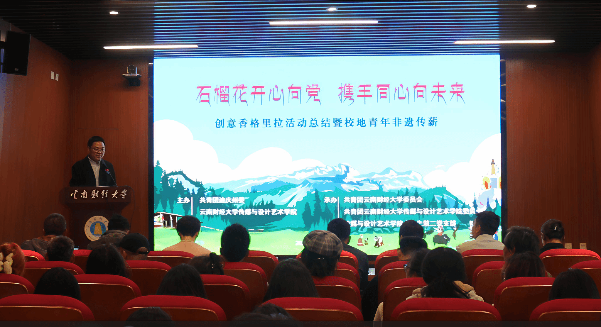12月11日,“石榴花开心向党 携手同心向未来”创意香格里拉活动总结暨校地青年非遗传薪活动在传媒与设计艺术学院举行,共青团迪庆州委书记唐浚泷等一行到院参加活动。活动由传媒与设计艺术学院党委书记张波主持。