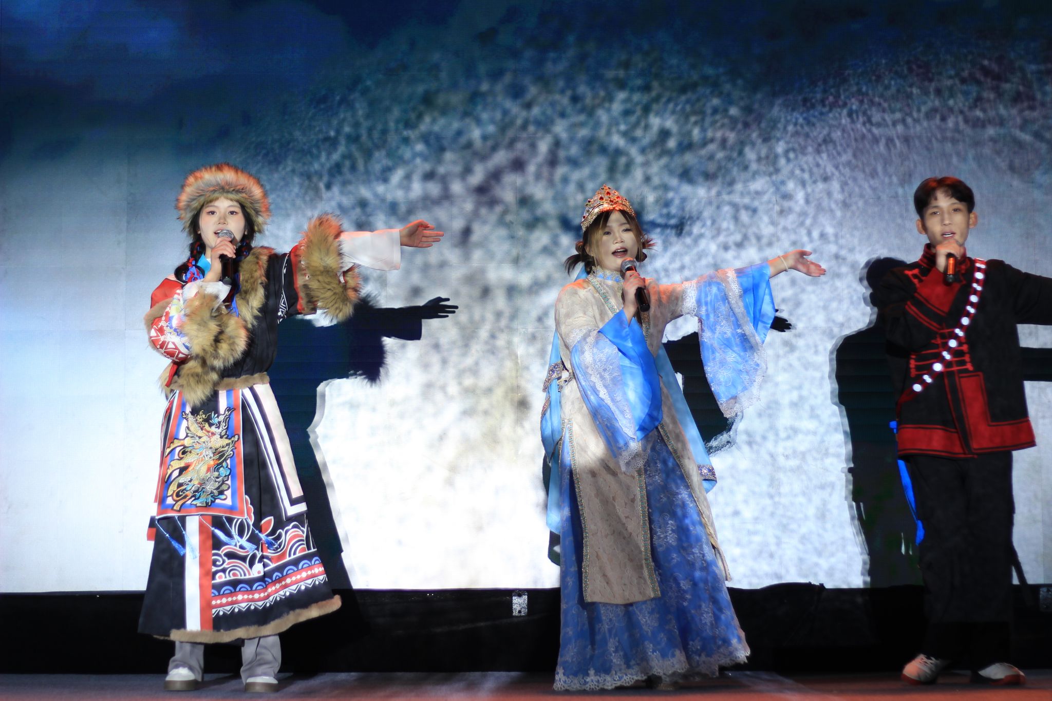 表演环节,敦煌舞蹈《沁莲》以轻盈灵动的舞姿唤醒敦煌文化中华民族交流融合的历史记忆;傣族舞蹈《烬》凭借神秘热情的韵律展现西南少数民族独特的文化魅力;国风舞蹈《逾三朝》《花间酒・魅》在古典与现代的交融中诉说着中华民族文化的源远流长与创新发展;古风爵士舞蹈《玄鸟》、民族爵士舞蹈《China》以时尚活力的舞步诠释民族文化的当代适应性与包容性。合唱《带我去山顶》《飞云之下》用激昂嘹亮的歌声传递各民族对美好生活的共同向往与追求,而创新改编的歌曲串烧《民族乐韵汇华章》巧妙融合京剧等传统文化瑰宝,犹如文化融合的号角,激励青年学子勇做中华文化的传承者、创新者。