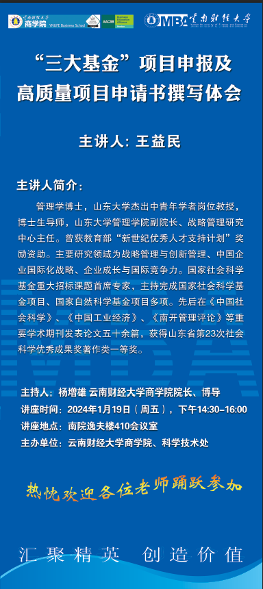 【1月19日】“三大基金”项目申报及高质量项目申请书撰写体会