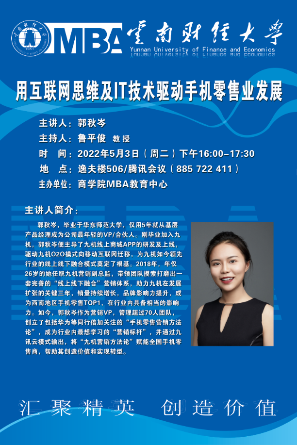 上一条:【5月3日】MBA讲座:智能时代趋势与大数据思维变革