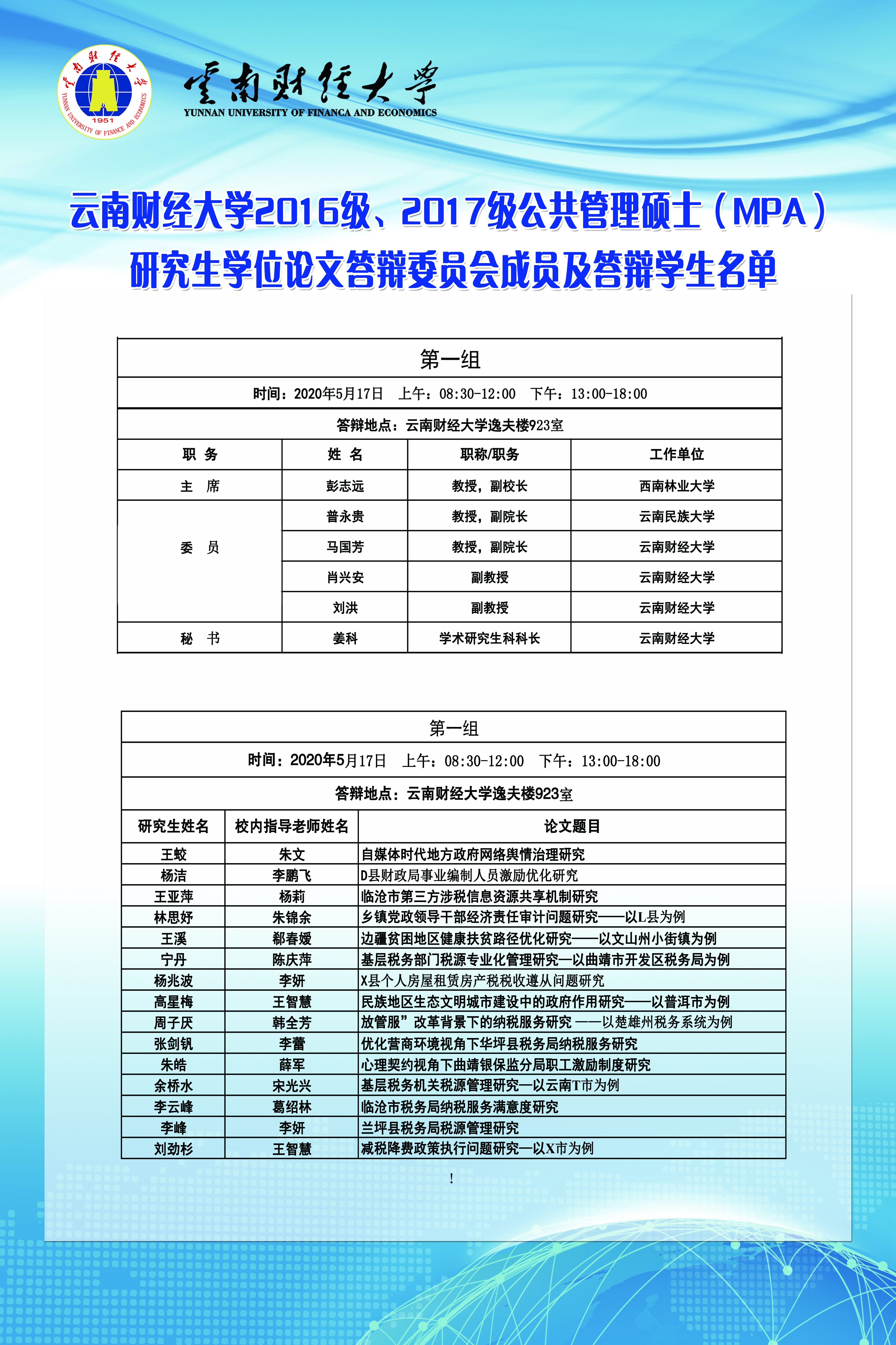 上一条:2020年春季研究生学位论文答辩(八)