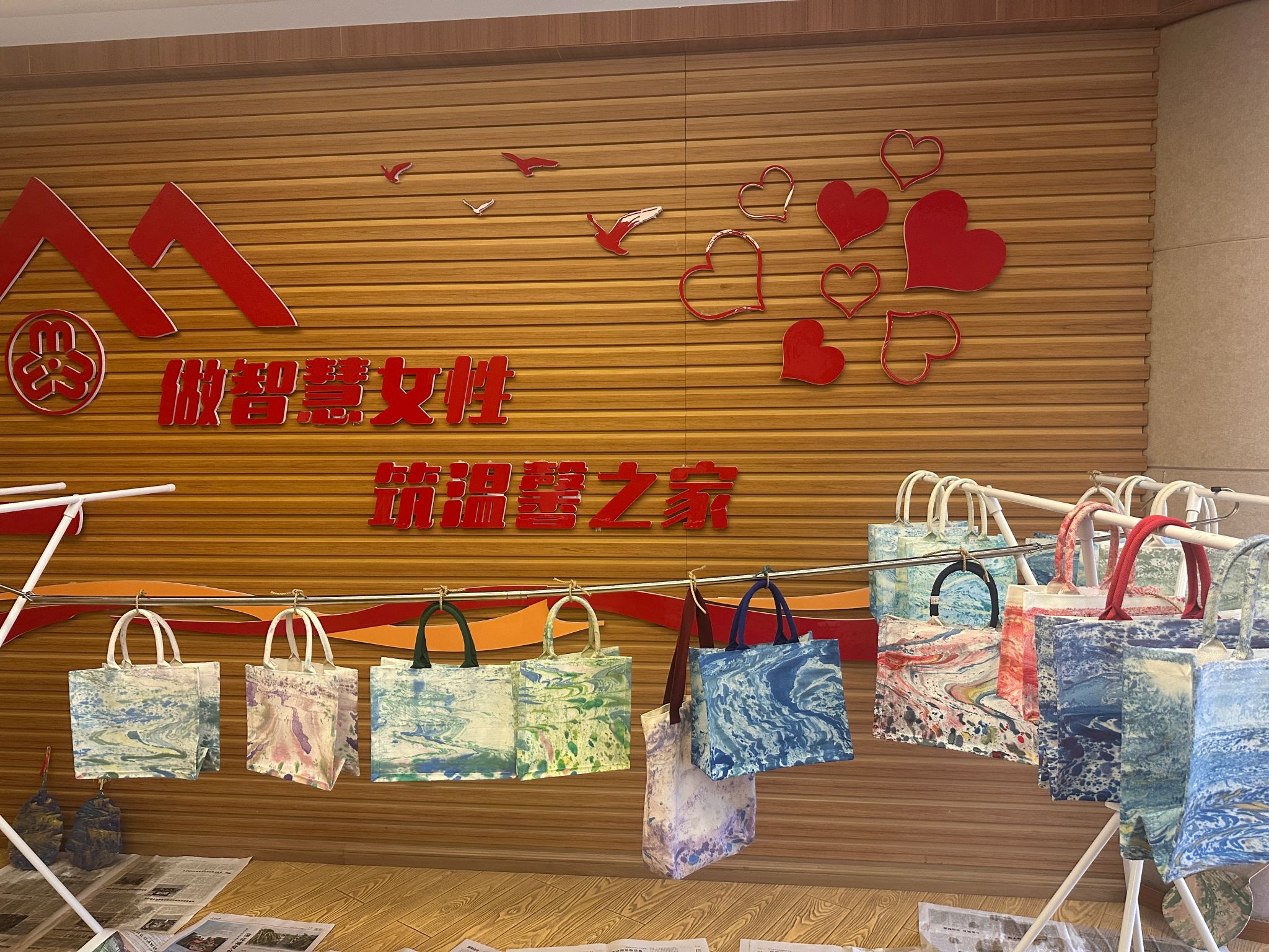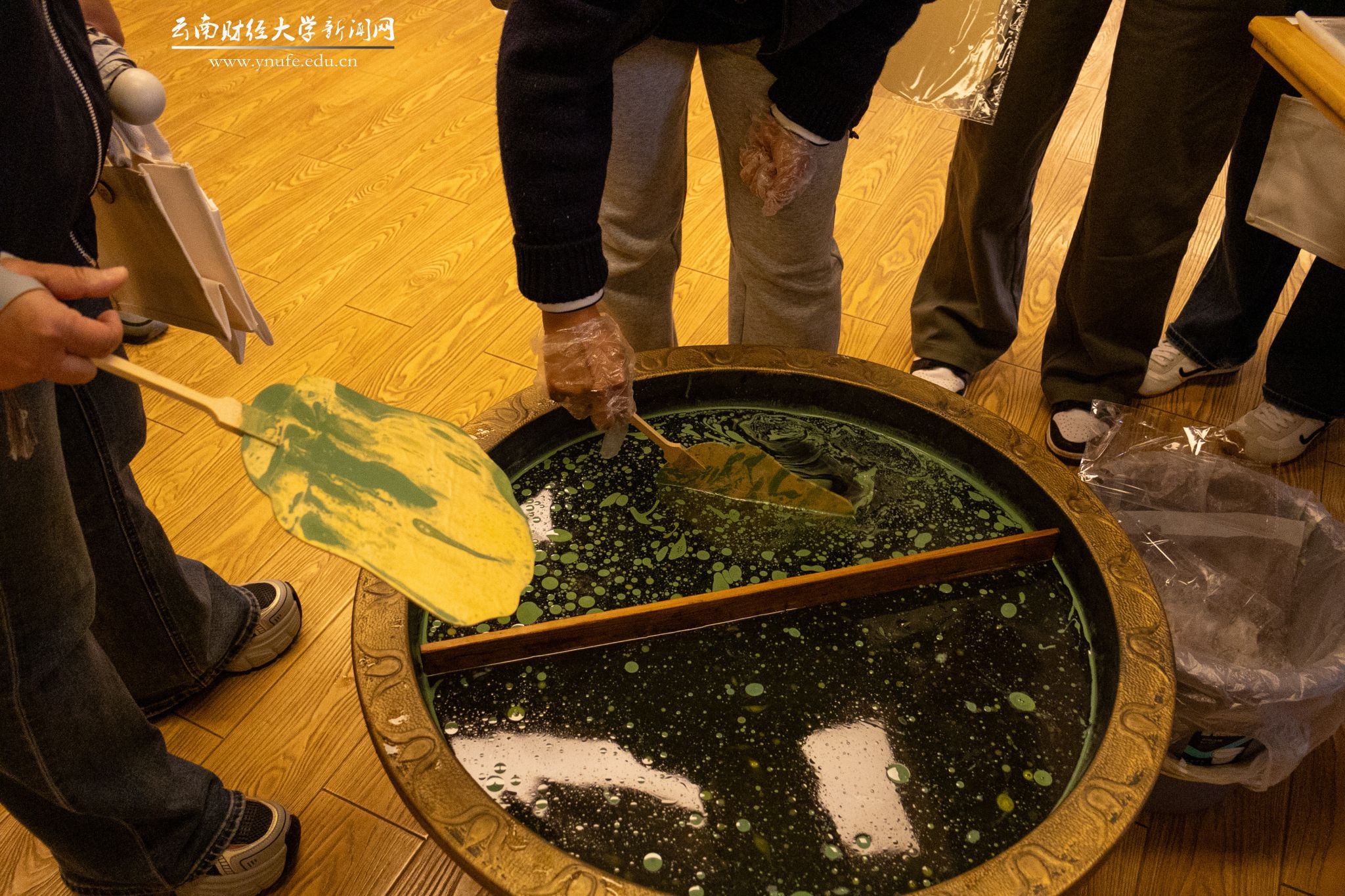 在非遗漂漆体验区,女教职工们以漆为墨、以扇为纸,在水波流转间捕捉春日的灵动色彩。每一把漆扇,都是她们与春天的一次亲密对话,是色彩与创意的有趣碰撞。
