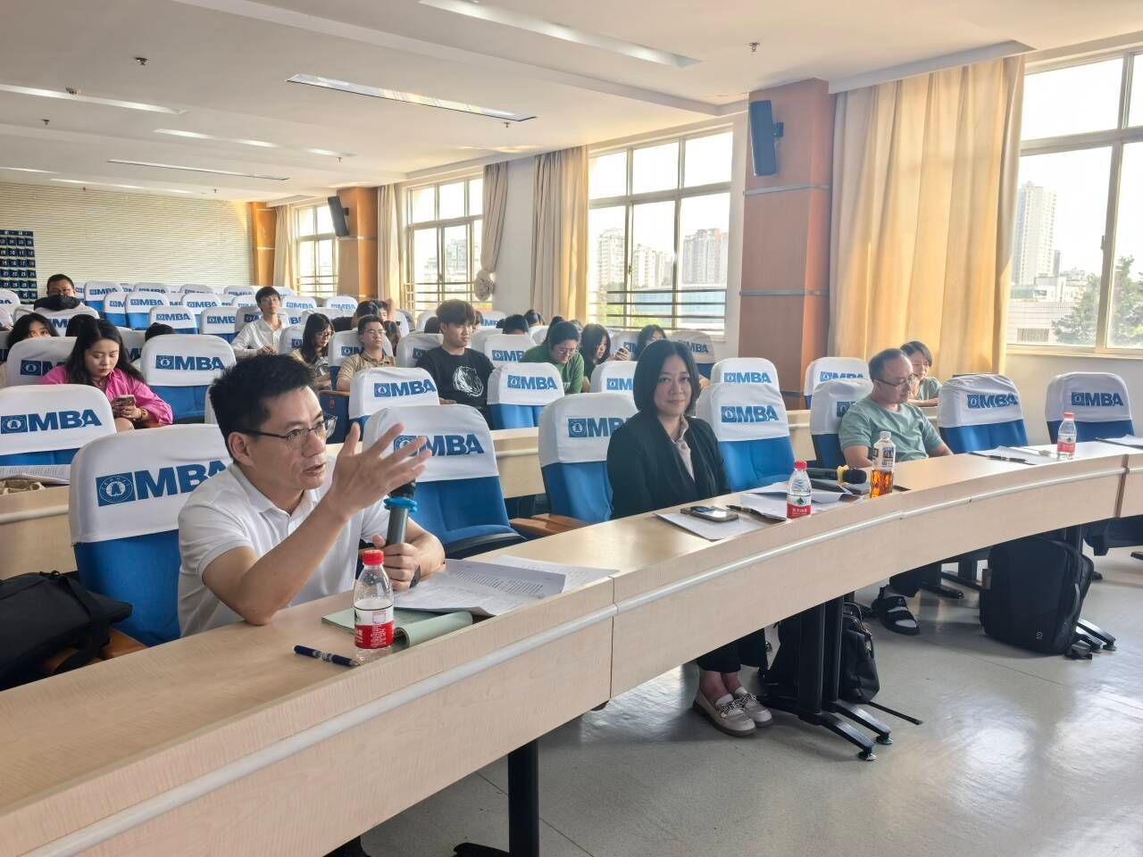 商学院两名青年教师程建青副教授、杨荣静博士分别以“经济波动下创业生态系统如何驱动高创业活跃度?——基于制度组态演化的动态QCA分析”和“中美技术管制政策评估:基于多源数据与机器学习的因果效应分析”为主题进行了论文汇报。点评专家有针对性地提出修改意见和建议,与会师生积极参与互动研讨,激发了创新思维。