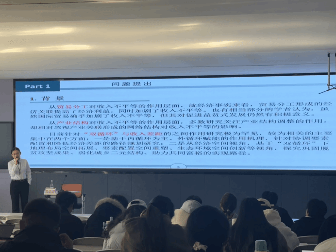 刘梦围绕“双循环与益贫式增长”这一核心议题,阐述了该领域的研究价值与现实意义,阐释了“理论落地+实证支撑”的研究理念。她结合自身研究成果,通过展示已发表论文的实证过程,系统讲解了如何构建从国家需求、理论缺口到研究问题与创新点的完整逻辑闭环。