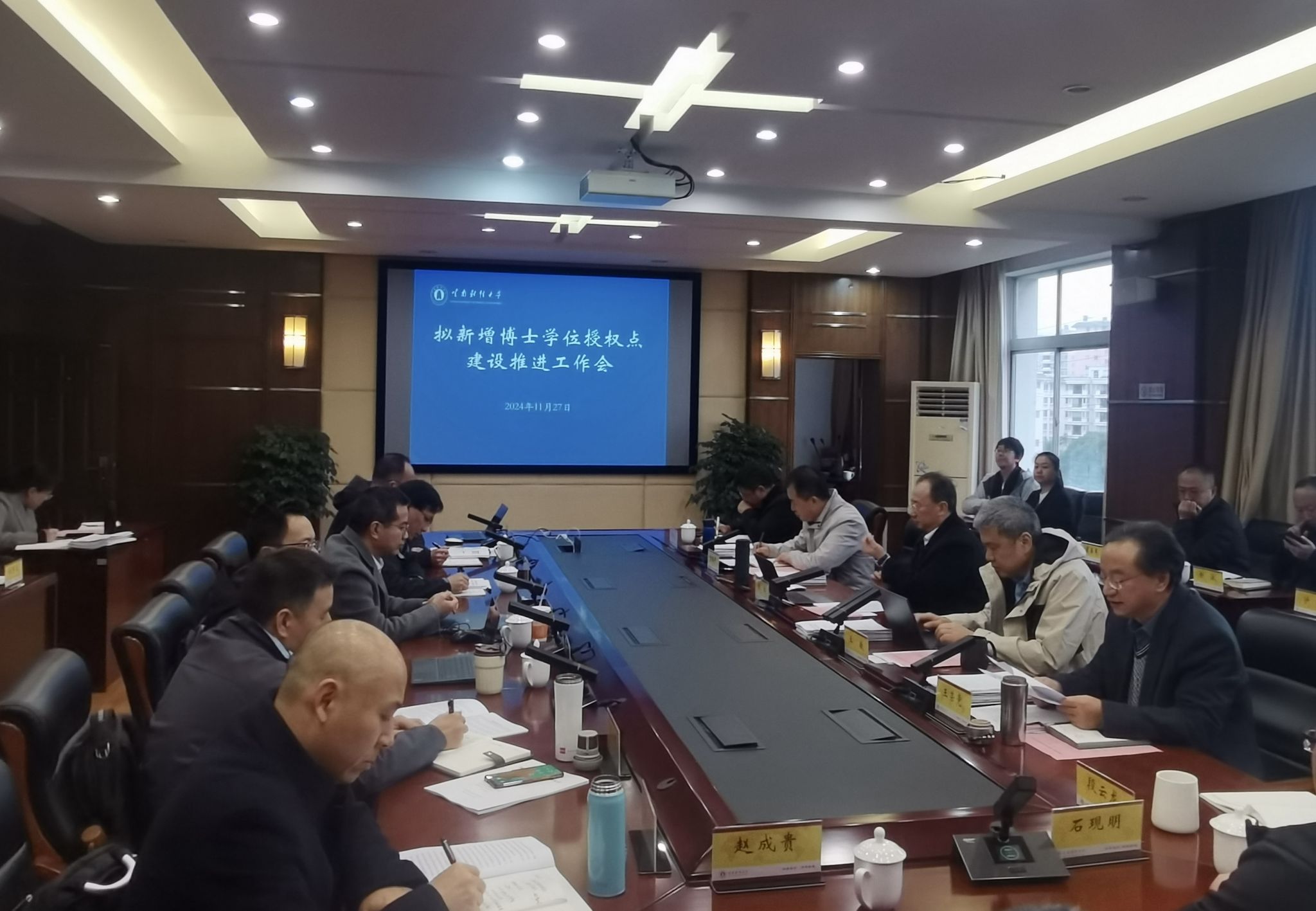 研究生院、人事处、科学技术处、学生处、对外合作交流处、招生与职业发展中心等部门主要负责人以及相关学院、学科及学科方向负责人参加会议。