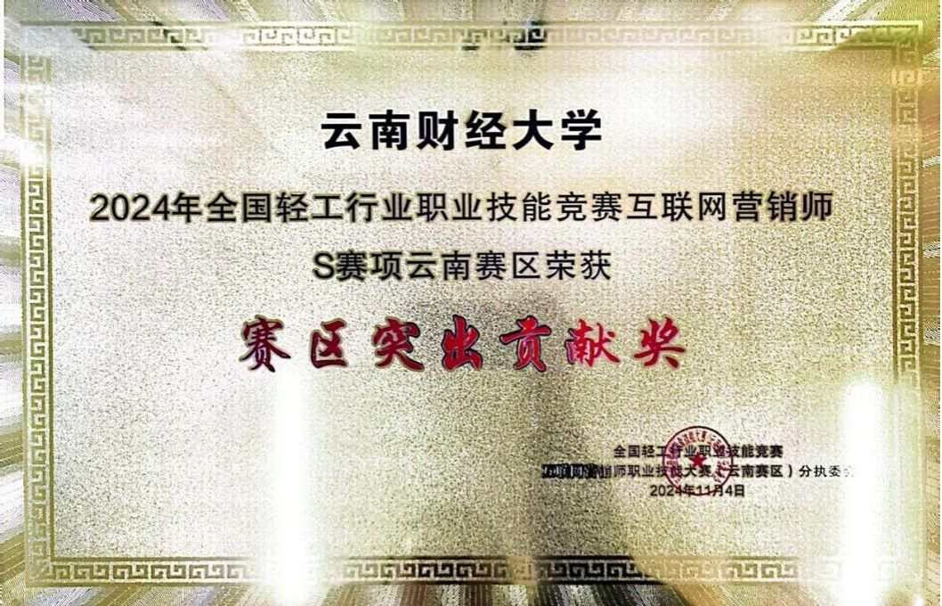 近日,2024年第四届全国轻工行业职业技能竞赛互联网营销师大赛云南赛区比赛举行。来自中华职业学院的沈韵彤、李晓倩同学,在指导教师邓平的指导下,分获第二名、第三名,WilliamHill官方网站荣获“赛区突出贡献奖”。
