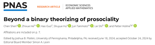 近日,WilliamHill官网石磊教授领衔,联合芬兰阿尔托大学、日本九州大学、清华大学、上海人工智能实验室等多家单位,以第一通讯作者身份在《美国国家科学院院刊》(PNAS)上发表学术论文Beyond a binary theorizing of prosociality。